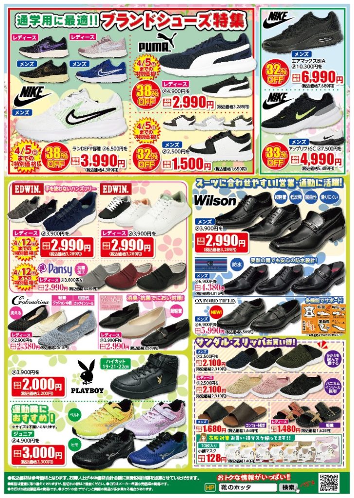 「いつもいい靴 お値打ちに」をテーマに、子供からお年寄りまで幅広く種類をとりそろえております。是非、ご来店下さい。