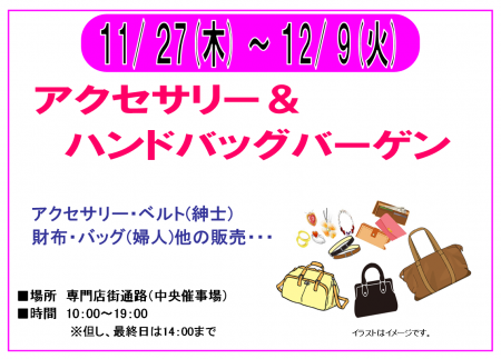 【終了】11/27~12/9 アクセサリー&ハンドバッグバーゲン 開催