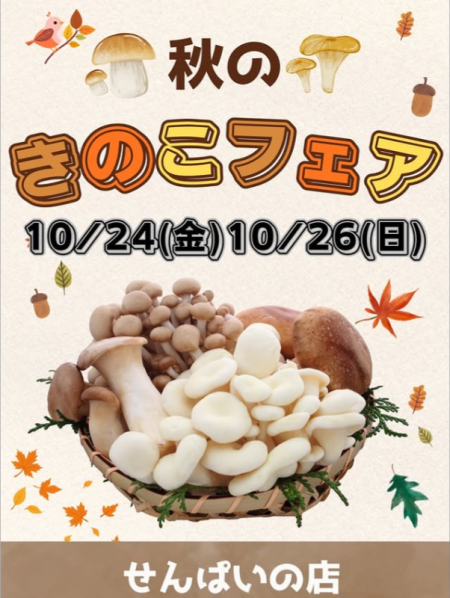 このフェアでは、しめじやしいたけ、なめこ、ヒラタケなど